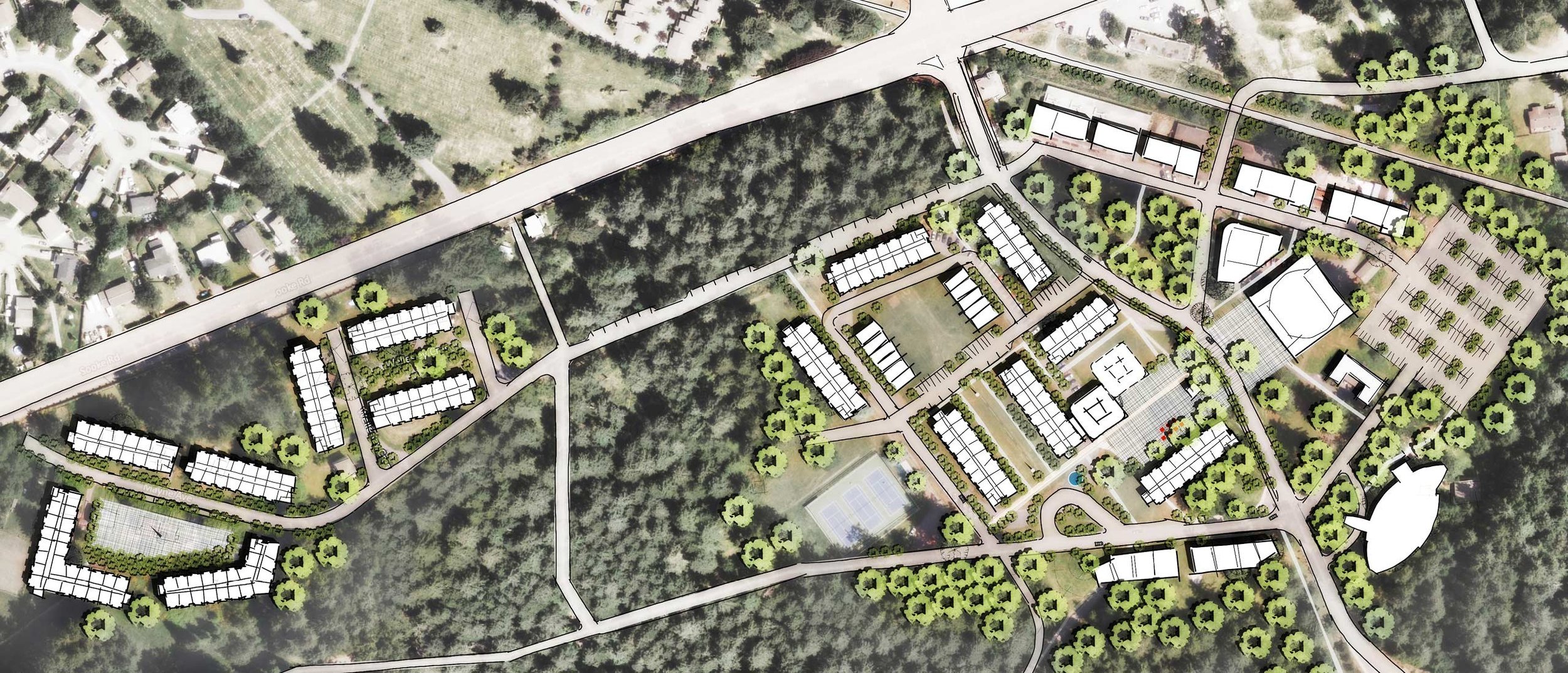 A comprehensive campus development of a former Edwardian estate and Military College, for a growing university. The 145-acre waterfront site will have a number of new buildings, developed in phases amongst the existing structures. The concept reinforces the central oval court as the heart of the campus, with concentric ‘rings’ of development occurring over time.